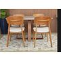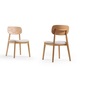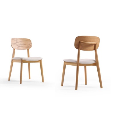 Cadeira contemporânea com linhas finas, encosto em madeira laminada e assento estofado. Pés em madeira maciça