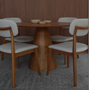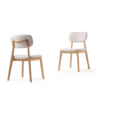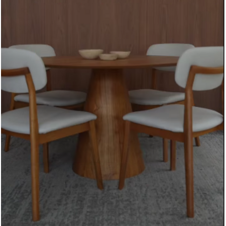 Cadeira contemporânea com linhas finas, encosto em madeira laminada e assento estofado. Pés em madeira maciça.