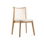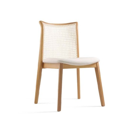 Cadeira contemporânea com linhas finas, encosto com puxador em madeira maciça e assento estofado. Pés em madeira disponíveis nas cores ébano, mel ou castanho. Mais de 30 tecidos para escolha.